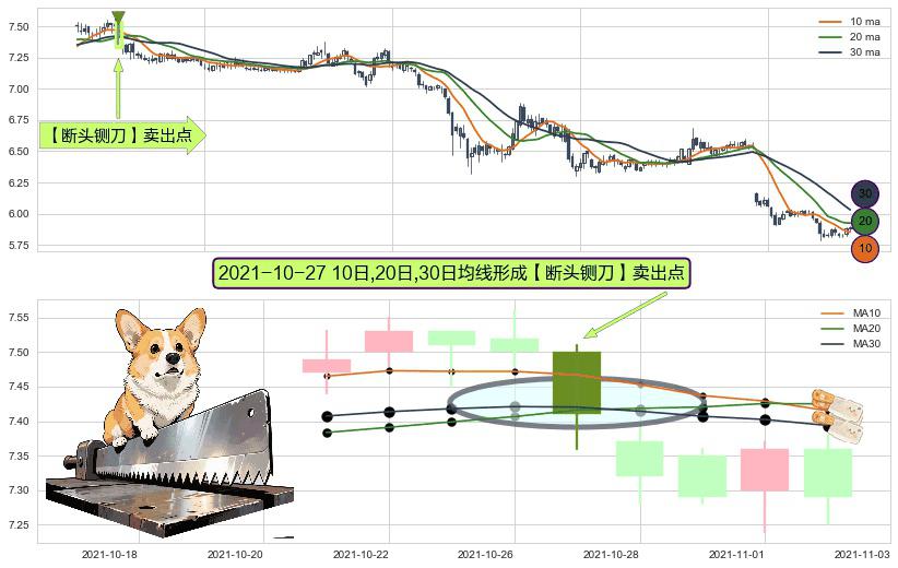 形态多维评估: ⚀ 2021-10-27日显现 10日-20日-30日均线 【断头铡刀】卖出点 看空信号,后市看跌,卖出