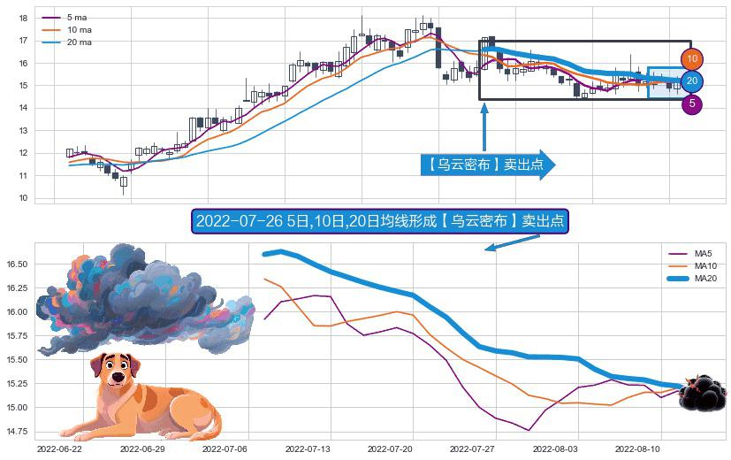 形态多维评估: ⚀ 2022-07-07日-2022-08-12日显现 5日-10日-20日均线 【乌云密布】卖出点 看空信号,后市看跌,卖出