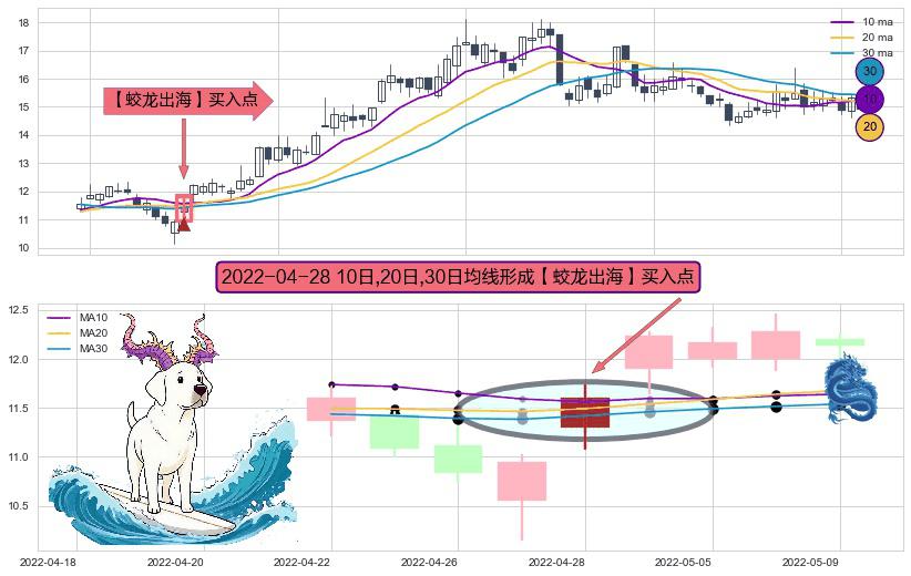 形态多维评估: ⚀ 2022-04-28日显现 10日-20日-30日均线 【蛟龙出海】买入点 看多信号,后市看涨,买入