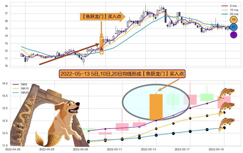 形态多维评估: ⚀ 2022-05-13日显现 5日-10日-20日均线 【鱼跃龙门】买入点 看多信号,后市看涨,买入