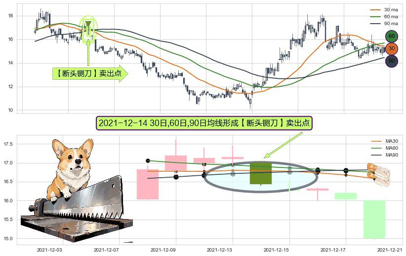 形态多维评估: ⚀ 2021-12-14日显现 30日-60日-90日均线 【断头铡刀】卖出点 看空信号,后市看跌,卖出