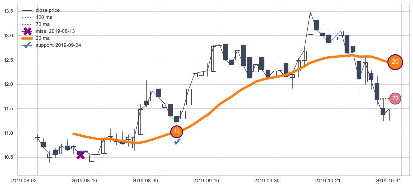 上涨趋势2019-08-02-2019-10-31,均线20确认关键支撑1处
