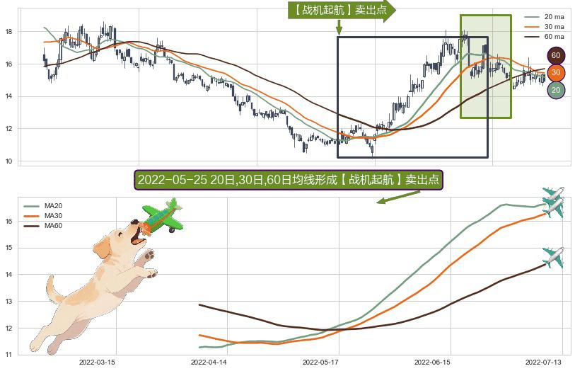 形态多维评估: ⚀ 2022-04-07日-2022-07-08日显现 20日-30日-60日均线 【战机起航】卖出点 看空信号,后市看跌,卖出