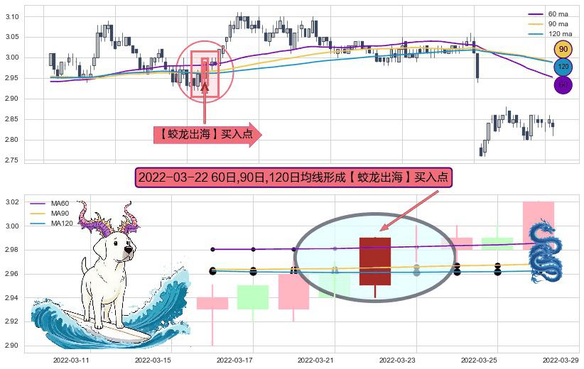形态多维评估: ⚀ 2022-03-22日显现 60日-90日-120日均线 【蛟龙出海】买入点 看多信号,后市看涨,买入
