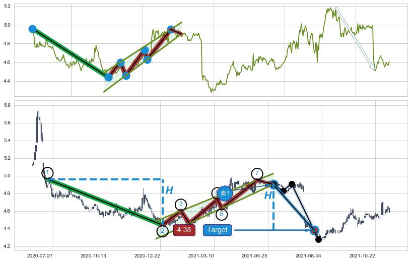 ➣ 最小中继整理跌幅→𝐇: 0.5200 (𝐇旗杆的长度:旗杆起点→顶点)
