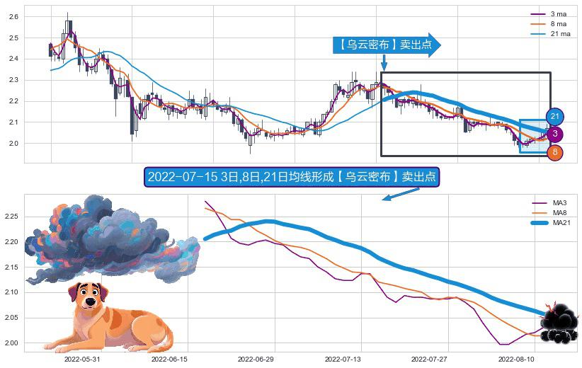 形态多维评估: ⚀ 2022-06-17日-2022-08-12日显现 3日-8日-21日均线 【乌云密布】卖出点 看空信号,后市看跌,卖出