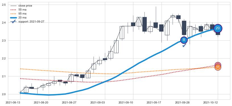 上涨趋势2021-12-01-2022-02-24,均线55确认关键支撑1处