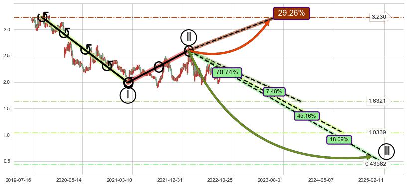 ➣ D点拟合预测价格2.870,距离最后交易收盘价格2.070相差 +38.66%