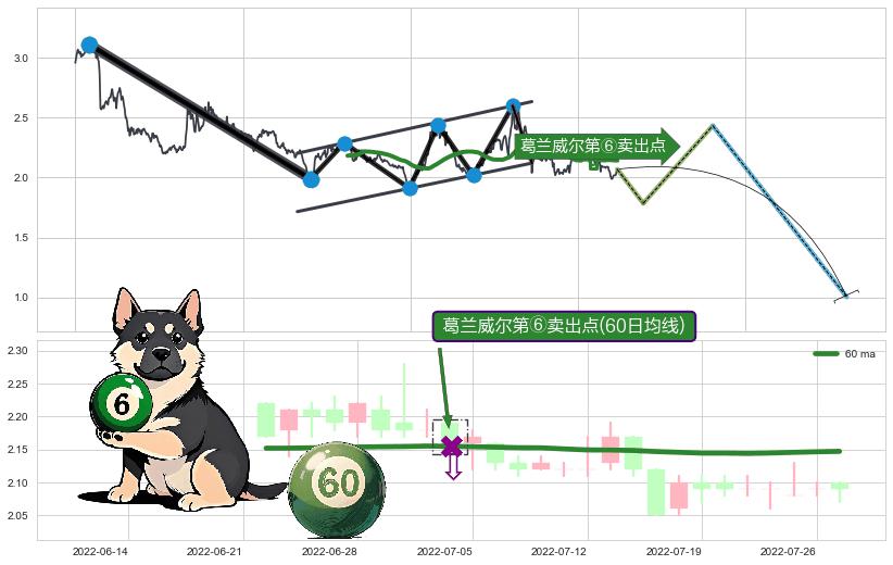 | 6 🅚:葛兰威尔第⑧卖出点 ➕ 🌊:波浪理论下跌5浪延续:猜想C点强阻力小反弹终止,猜想保持下跌5浪方向下行(均值回复后大周期继续趋势跟踪) ☞ 看空信号 ⇥ 【均线】交织【图形】⇥ 综合量化分数: 39 | > |