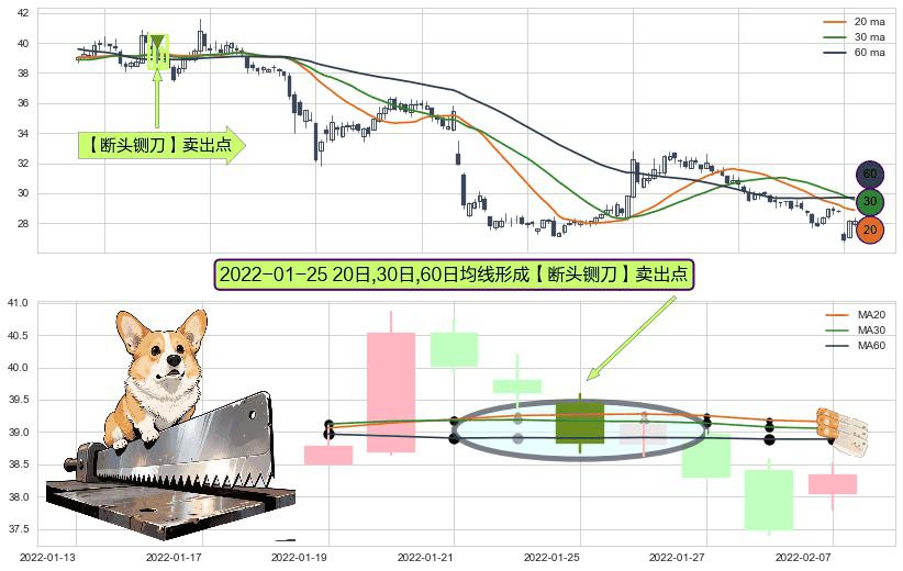 形态多维评估: ⚀ 2022-01-25日显现 20日-30日-60日均线 【断头铡刀】卖出点 看空信号,后市看跌,卖出