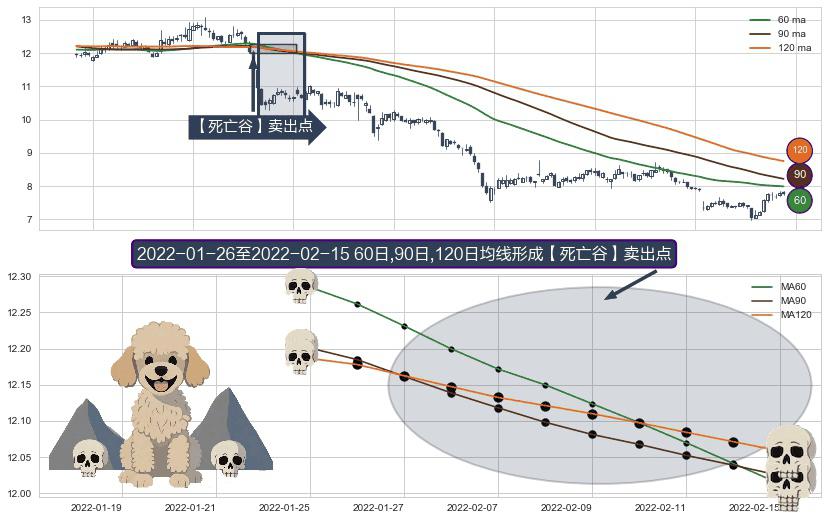 ⚀ 2022-01-27-日至2022-02-15-日显现 60日-90日-120日均线 【死亡谷】卖出点 看空信号,后市看跌,卖出