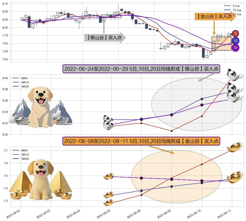 ⚀ 2022-08-09-日至2022-08-11-日显现 5日-10日-20日均线 【金山谷】买入点 其再次确认了买入信号,可靠性更强,买入