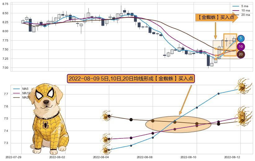 ⚀ 2022-08-09日显现 5日-10日-20日均线 【金蜘蛛】买入点 看多信号,后市看涨,买入