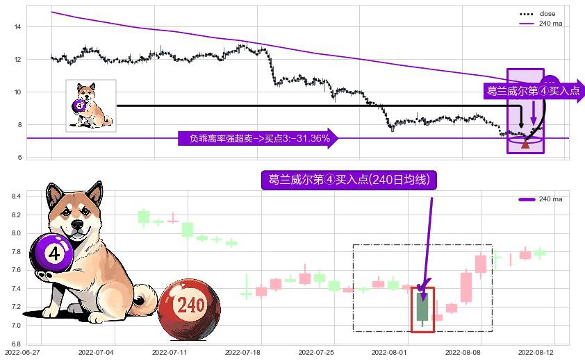 ⚀ 2022-08-02-日显现 葛兰威尔均线 240日均线 第④买入点 下降趋势均值回复的短线反弹信号,后市看涨,买进信号