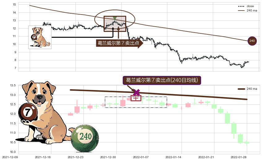 ⚀ 2022-01-05-日显现 葛兰威尔均线 240日均线 第⑦卖出点 下降趋势的中继信号,后市看跌,卖出信号