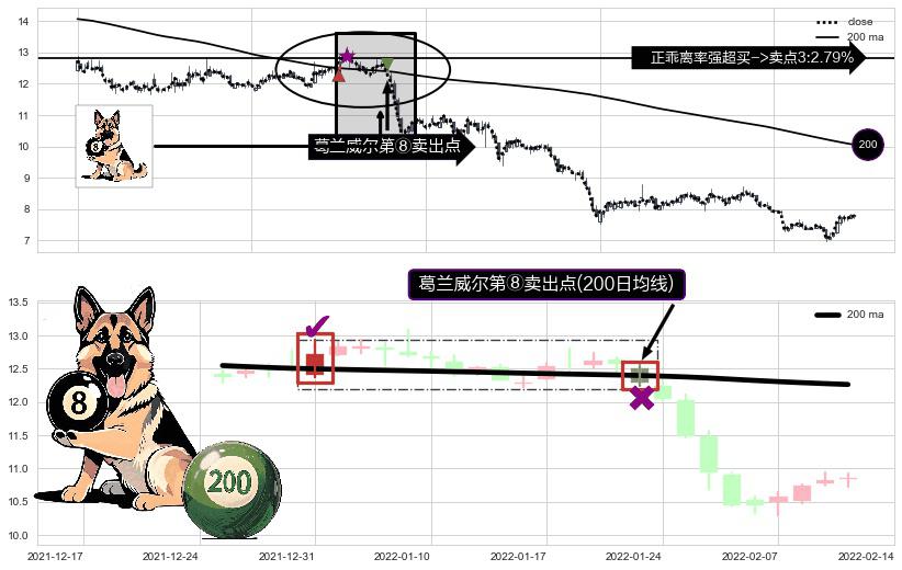⚀ 2022-01-21-日显现 葛兰威尔均线 200日均线 第⑧卖出点 下降趋势的中继信号,后市看跌,卖出信号