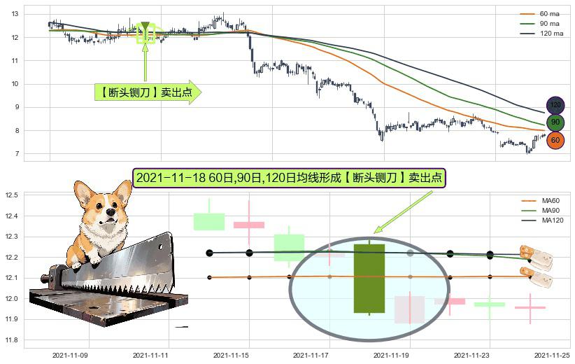 ⚀ 2021-11-18日显现 60日-90日-120日均线 【断头铡刀】卖出点 看空信号,后市看跌,卖出