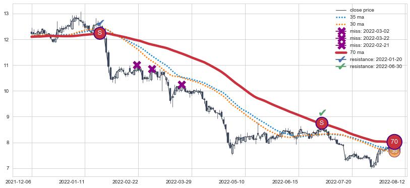 ⚂ 2021-12-31-日均线向上突破,2022-01-21-日重新下穿均线破位,均线阻力再次生效