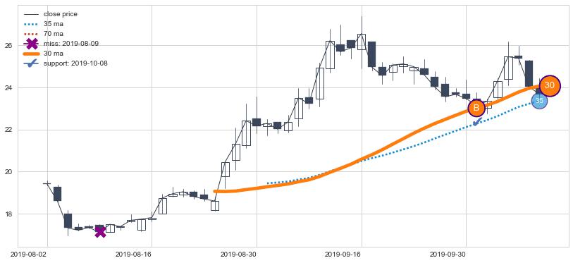 ⚂ 在价格越跌越快过程中,30,60,90均线组合表现出明显的【空头发散】形态,明确的曙光信号
