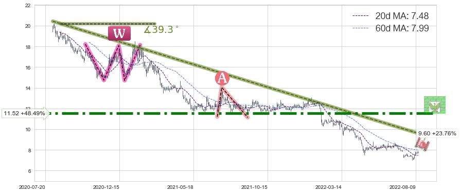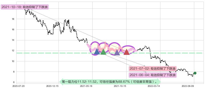 ♘ 阻力价格位11.52,可信任强度88.67%,距离最后交易2022-08-12形成的收盘价格7.76相差 +48.49%