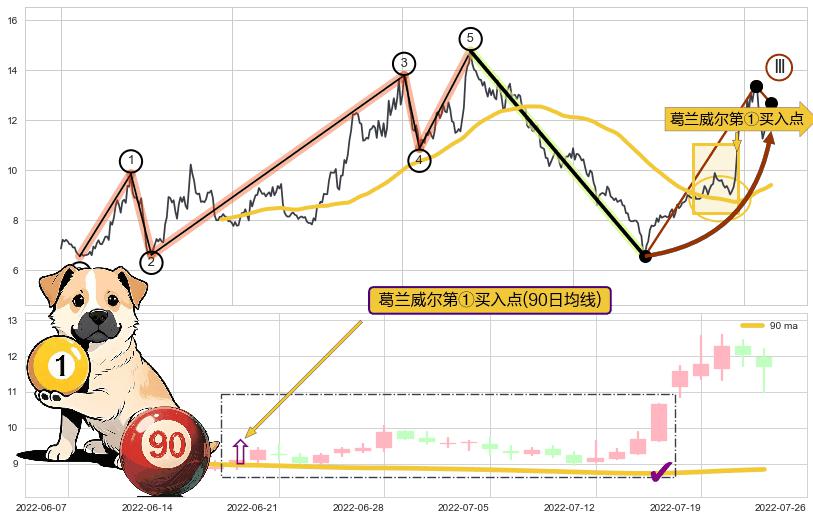 | 4 🅚:红三兵 ➕ 🎢:葛兰威尔第①买入点买入点信号形成后,猜想后续下跌趋势反转上涨趋势(均值回复) ☞ 看多信号 ⇥ 【均线】交织【🅚线】⇥ 综合量化分数: 54 | > |