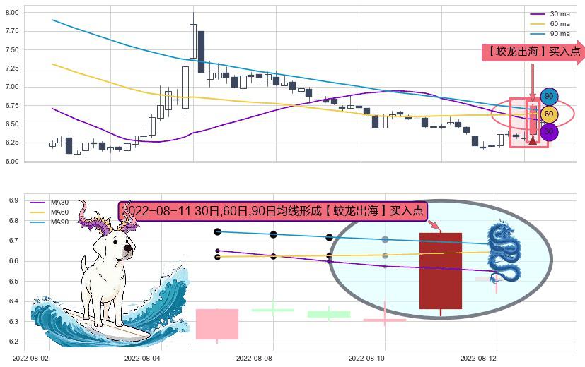 形态多维评估: ⚀ 2022-08-11日显现 30日-60日-90日均线 【蛟龙出海】买入点 看多信号,后市看涨,买入