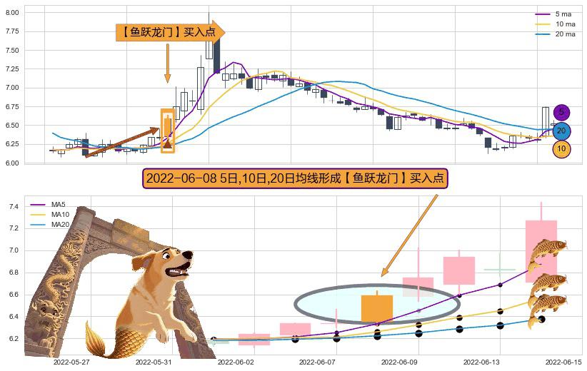 形态多维评估: ⚀ 2022-06-08日显现 5日-10日-20日均线 【鱼跃龙门】买入点 看多信号,后市看涨,买入