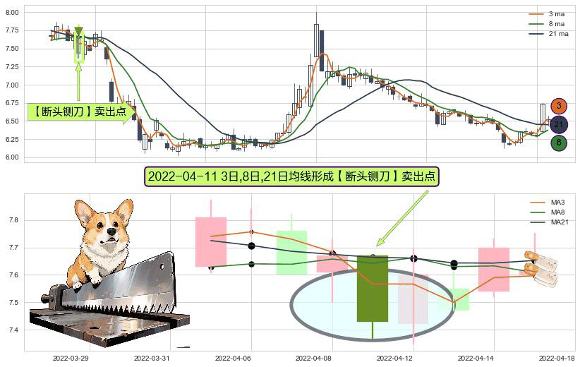 形态多维评估: ⚀ 2022-04-11日显现 3日-8日-21日均线 【断头铡刀】卖出点 看空信号,后市看跌,卖出