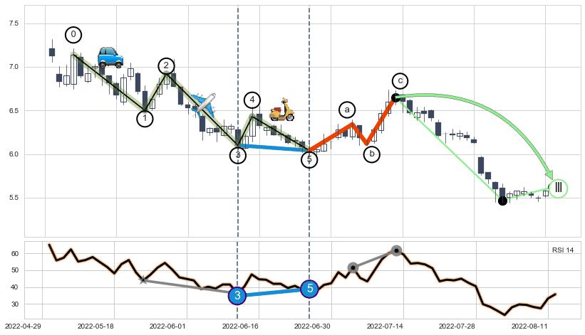 ➣ a,c调整浪RSI走势未出现明显背离