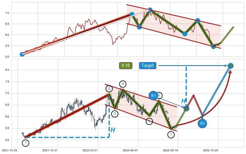 ➢ AI预测: 假定反转如期而至,第❸价格目标位置(2022-11-08, 7.14)
