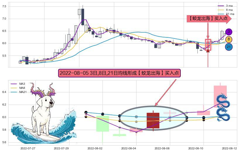 ⚀ 2022-08-05日显现 3日-8日-21日均线 【蛟龙出海】买入点 看多信号,后市看涨,买入