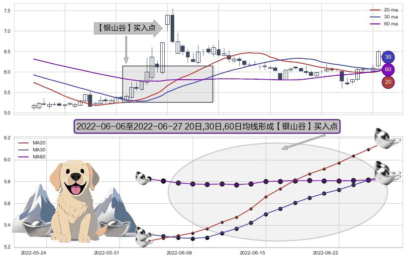 ⚀ 2022-06-07-日至2022-06-27-日显现 20日-30日-60日均线 【银山谷】买入点 看多信号,后市看涨,买入