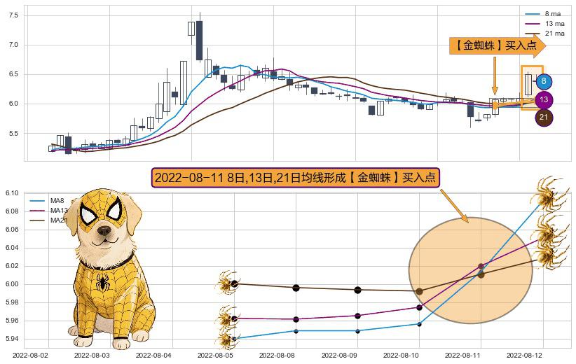 ⚀ 2022-08-11日显现 8日-13日-21日均线 【金蜘蛛】买入点 看多信号,后市看涨,买入