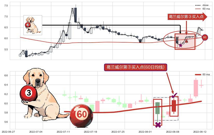 ⚀ 2022-08-05-日显现 葛兰威尔均线 60日均线 第③买入点 上升趋势的中继信号,后市看涨,买进信号