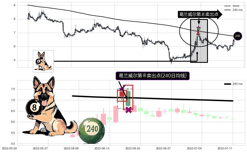 ⚀ 2022-06-16-日显现 葛兰威尔均线 240日均线 第⑧卖出点 下降趋势的中继信号,后市看跌,卖出信号