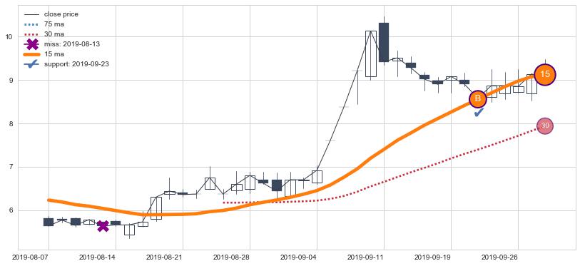 ⚀ 中期均线MA30上穿长期均线MA60形成的交叉是标准 黄金交叉