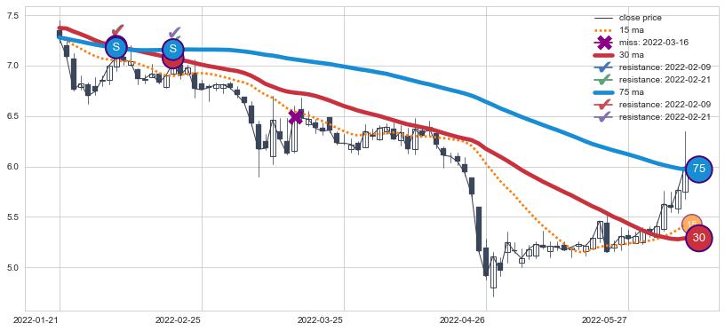 ⚂ 2022-06-15-日均线向上突破,2022-06-16-日重新下穿均线破位,均线阻力再次生效