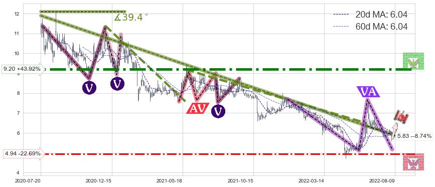♘ 支撑价格位4.94,可信任强度56.15%,距离最后交易2022-08-12形成的收盘价格6.39相差 -22.69%