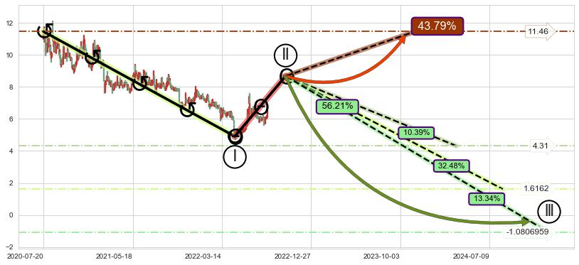 ➣ D点拟合预测价格8.11,距离最后交易收盘价格6.39相差 +26.96%