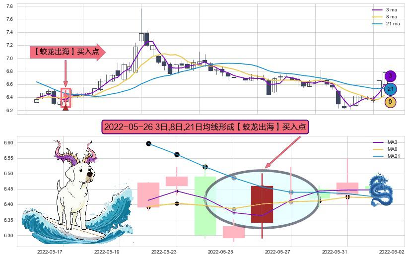 形态多维评估: ⚀ 2022-05-26日显现 3日-8日-21日均线 【蛟龙出海】买入点 看多信号,后市看涨,买入