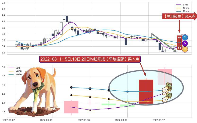 形态多维评估: ⚀ 2022-08-11日显现 5日-10日-20日均线 【旱地拔葱】买入点 看多信号,后市看涨,买入