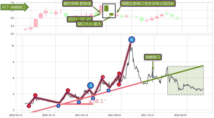 ➣ 2020-06-15-2021-11-15上升趋势存在反转[风险],其原上升趋势的支撑位(7.49)已破位[强阻力信号],原上升趋势角度: 38.1˚