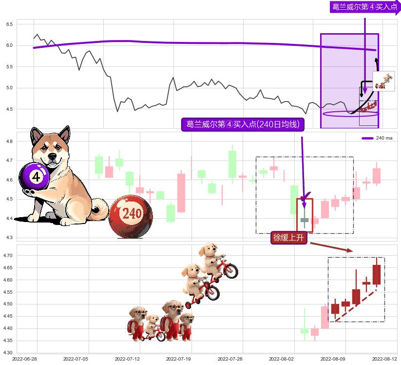 | 3 🅚:早晨之星(黎明之星) ➕ 🎢:葛兰威尔第④买入点买入点信号形成后,猜想后续走势持续反弹上升(均值回复) ☞ 看多信号 ⇥ 【均线】交织【🅚线】⇥ 综合量化分数: 55 | > |