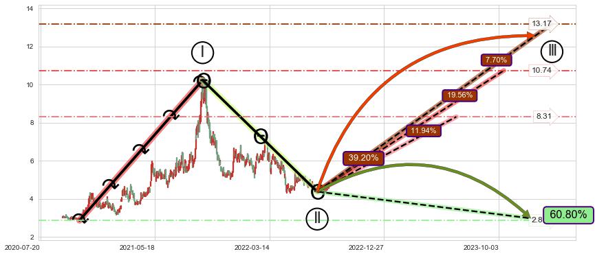 ➢ 循环浪继续向上【最低】位置(2023-06-21, 8.31),匹配聚类样本比例30.46%, 可能性概率11.94%