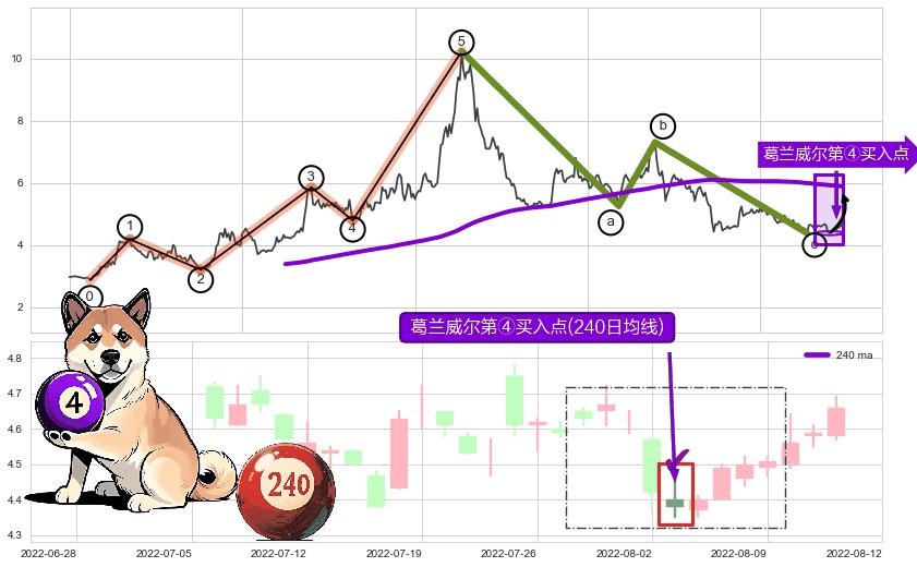 ➢ 高点影线(2022-08-10: 4.64 )→回踩→第一根k线低点(2022-08-01: 4.59 )
