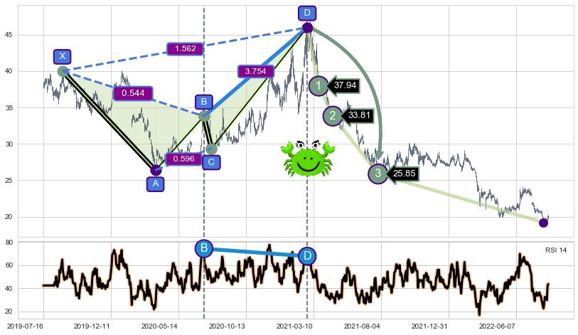 ➢ 谐波价格D点比B点高 ⤴,【RSI】指标D点比B点低 ⤵️