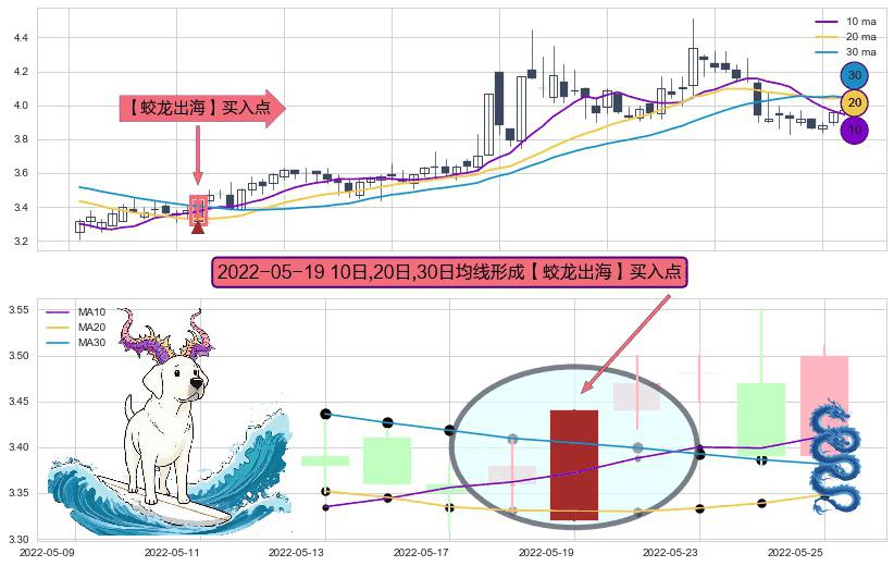 形态多维评估: ⚀ 2022-05-19日显现 10日-20日-30日均线 【蛟龙出海】买入点 看多信号,后市看涨,买入