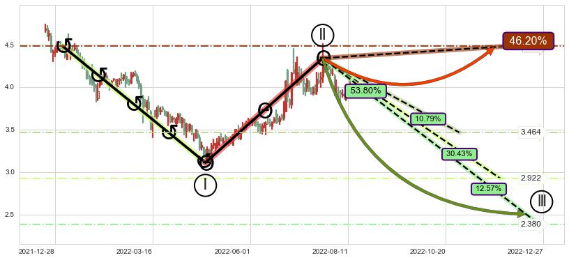 ♘ 支撑价格位3.205,可信任强度55.99%,距离最后交易2022-08-12形成的收盘价格3.970相差 -19.26%