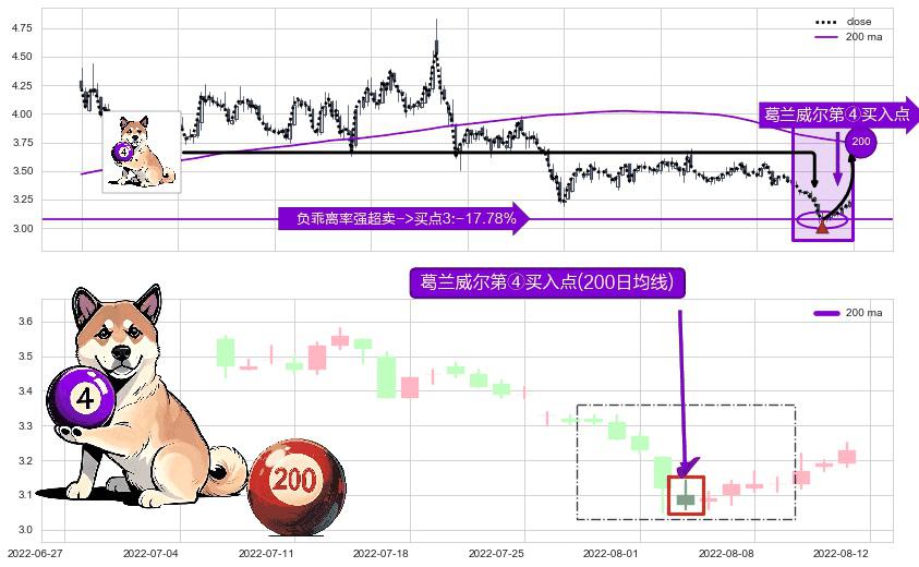 ⚀ 2022-08-03-日显现 葛兰威尔均线 200日均线 第④买入点 下降趋势均值回复的短线反弹信号,后市看涨,买进信号