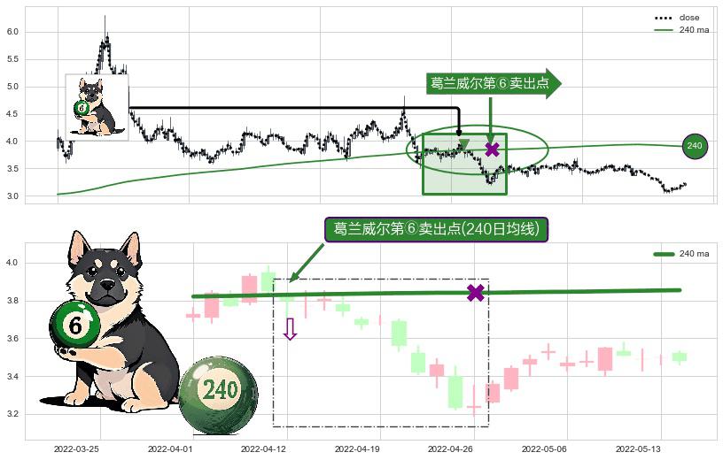 ⚀ 2022-04-12-日显现 葛兰威尔均线 240日均线 第⑥卖出点 走势反转见顶信号,后市看跌,卖出信号
